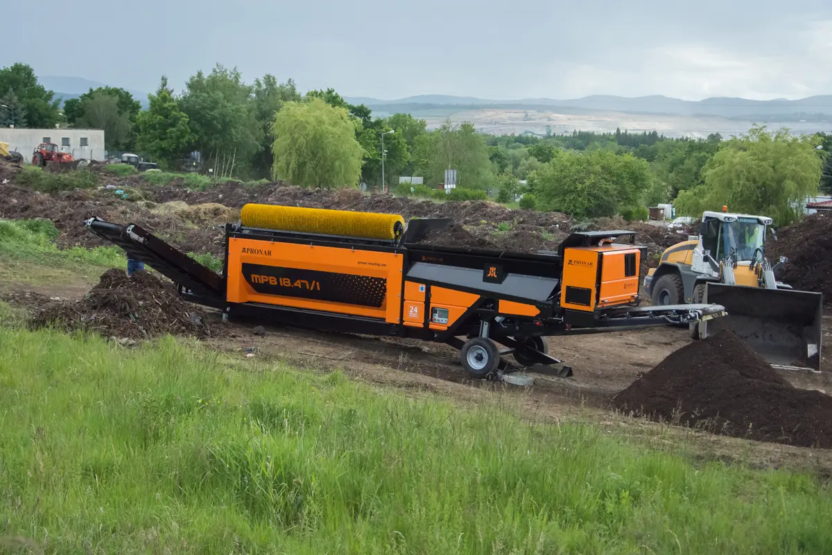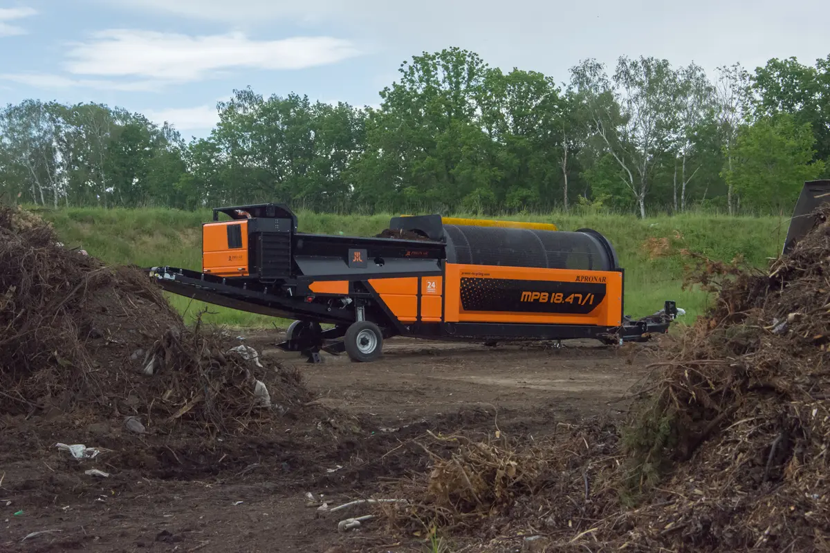 Мобильный барабанный грохот PRONAR MPB 20.55gh эффективно разделяет компоненты различных фракций.